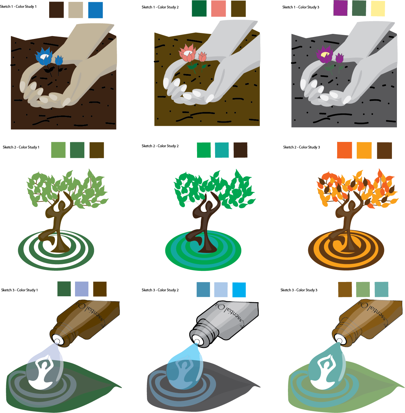 Illustrations created in Illustrator, pictures edited in Photoshop, & overall layout created with InDesign. The brochure is to sell essential oils, but also to inform of their history & uses. I wanted to create a light, but earthy feel to compliment them.